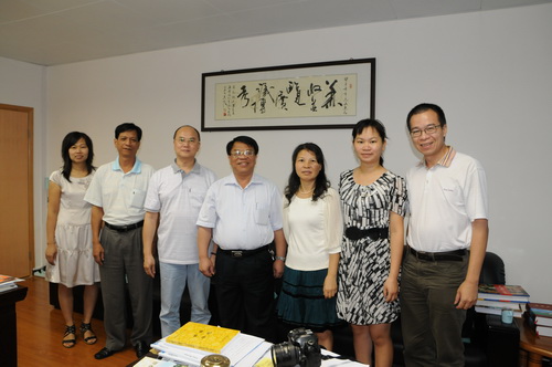 我司工會黃伯強主席(左三)、資訊部梁葆春經(jīng)理(右一)與開平市府辦有關負責同志及工作人員合影